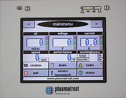 - Generador de plasma digital de alta frecuencia, control del sistema y la potencia mediante microunidad de mando integrada. Panel de control con pantalla táctil y diseño ergonómico para mostrar mensajes de estado y error. Potencia de salida: 2000 VA (FG5002) o 5000 VA para activar un máximo de cuatro u ocho toberas de plasma. Tensión de alimentación de 3 x 400 V. Rango de temperatura de funcionamiento: 0-40 °C. Instalación adaptada al servicio en el armario de control. Amplias funciones de control para una máxima replicabilidad y fiabilidad de los procesos.