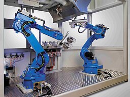 Los sistemas con robots de Plasmatreat disponen de toberas rotativas patentadas para aplicar el tratamiento con plasma (activación, limpieza), el recubrimiento con plasma y el endurecimiento superficial de componentes de tamaños y geometrías de lo más variadas. El sistema se integra directamente en la línea de producción sin que se necesiten cámaras especiales. El material tratado permanece en la línea de producción y los tratamientos posteriores se pueden realizar a continuación del tratamiento con plasma. De esta manera los procesos de producción se simplifican, aceleran y se vuelven especialmente económicos.