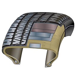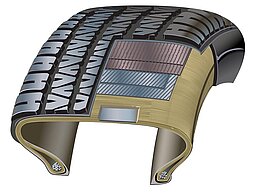 Para aumentar el índice de velocidad y la manejabilidad del neumático, la banda de rodadura se refuerza con Kevlar® (aramida). En este sentido, lograr una unión segura entre el material de la banda de rodadura y la malla de Kevlar® es de vital importancia para que el neumático pueda soportar fuerzas G elevadas. En la producción en serie, esta adhesión se promueve pretratando la malla de aramida con ácido sulfúrico cáustico.
